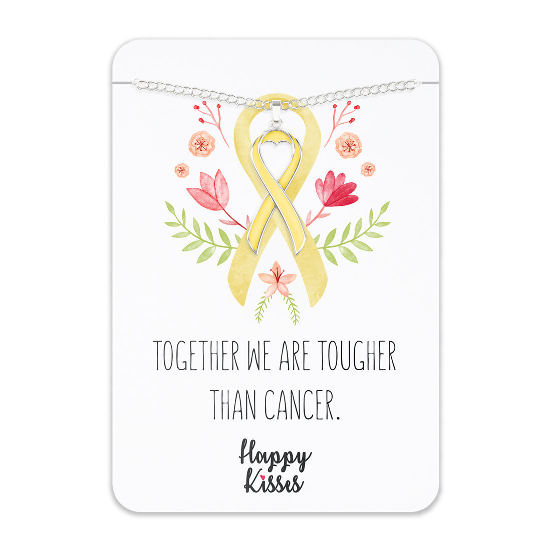 Bone Cancer Awareness Necklace – Yellow Ribbon Pendant, “Together We Are Tougher Than Cancer”