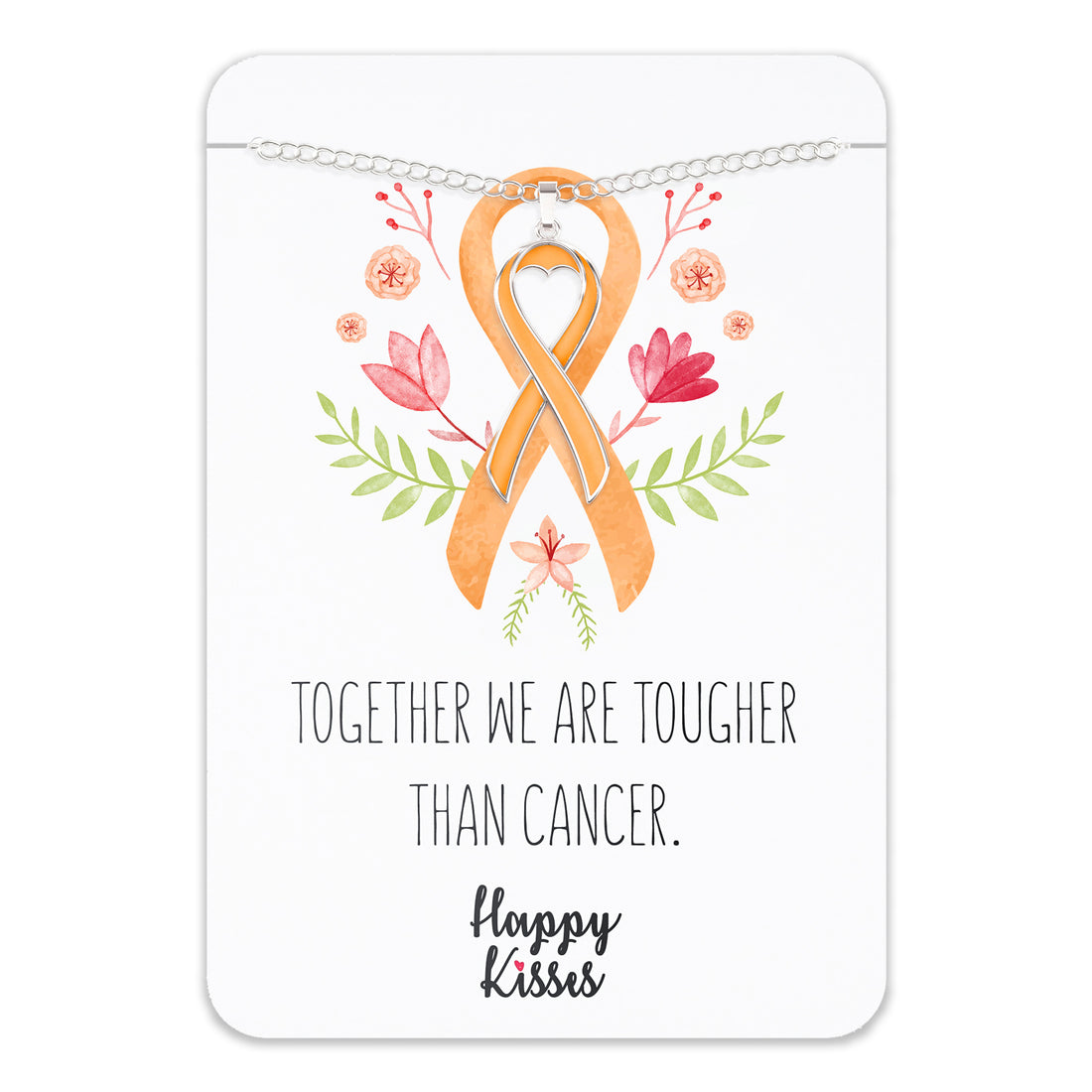 Kidney & Leukemia Cancer Awareness Necklace – Orange Ribbon Pendant, “Together We Are Tougher Than Cancer”