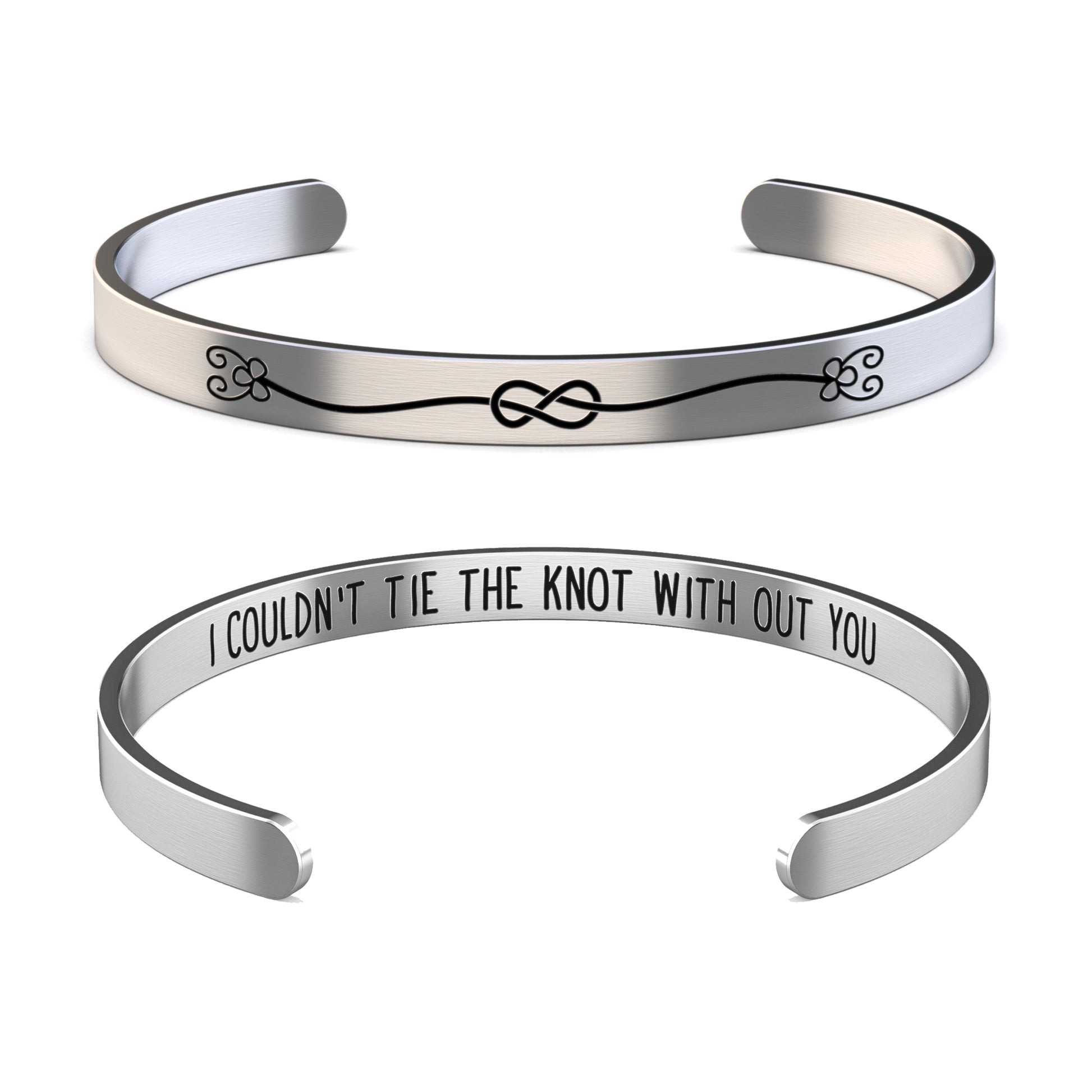 High-quality stainless-steel knot design cuff bracelet for bridesmaids and the maid of honor. Great gift that can be presented when asking your friends for their support. They come in a nice velvet gift bag, has a fancy knot design outside and a hidden message “I couldn’t tie the know without you” on the inside. Beautiful classic bracelet that will match any outfit or occasion. A very nice bracelet that can be worn during the wedding and later as a reminder of your friendship and their support.