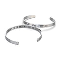 Sizing: This cuff is 2 5/8” X 1 7/8” X 2mm thick. The opening size is easily bent to accommodate any women’s, girl’s, or boy’s wrist. Jewelry designs are a copyright of Caring Hands Gifts, LLC.