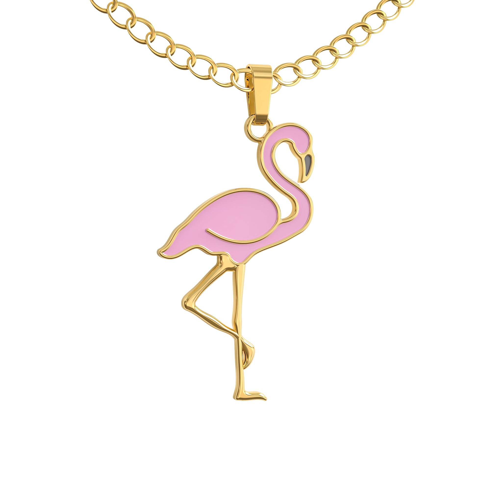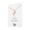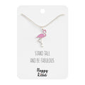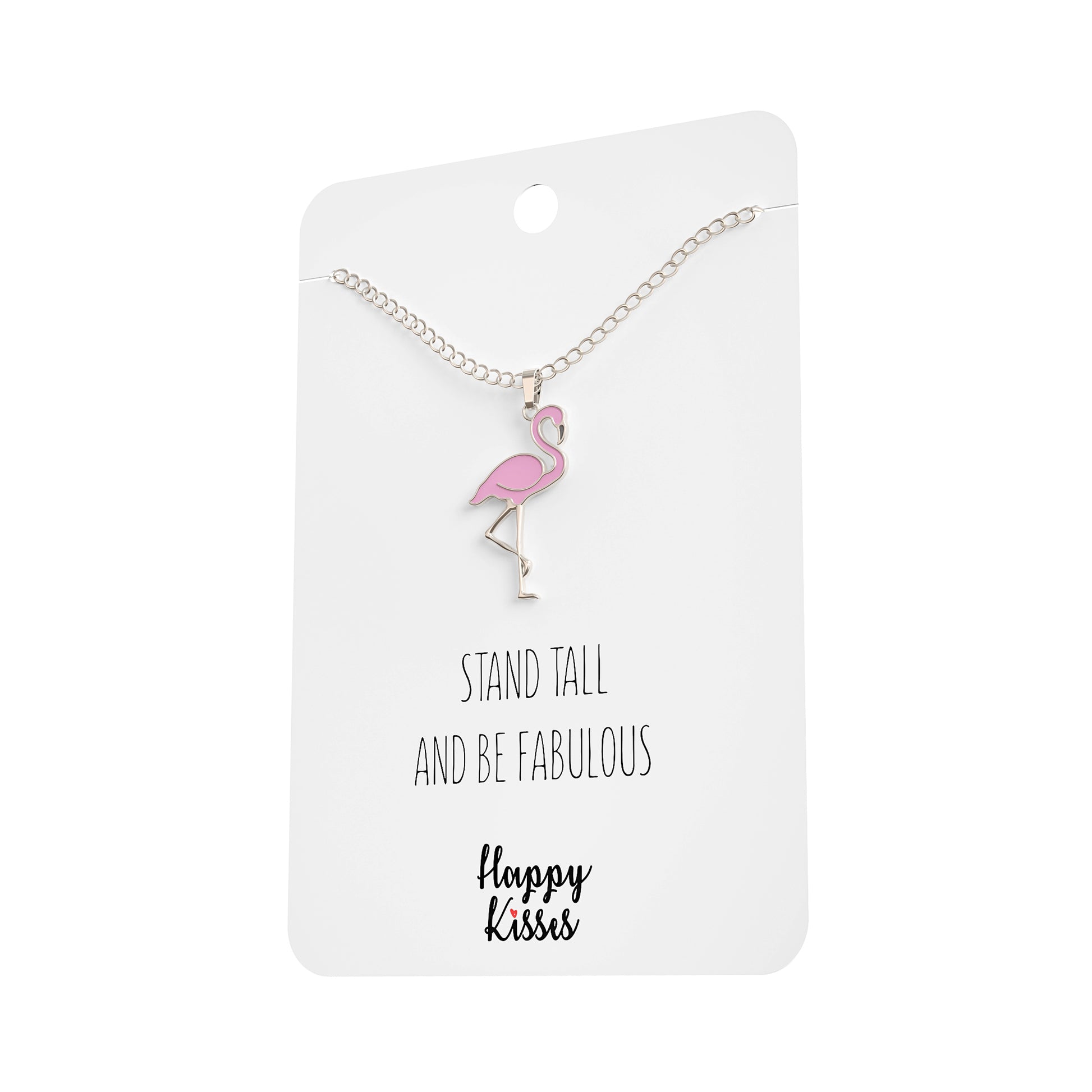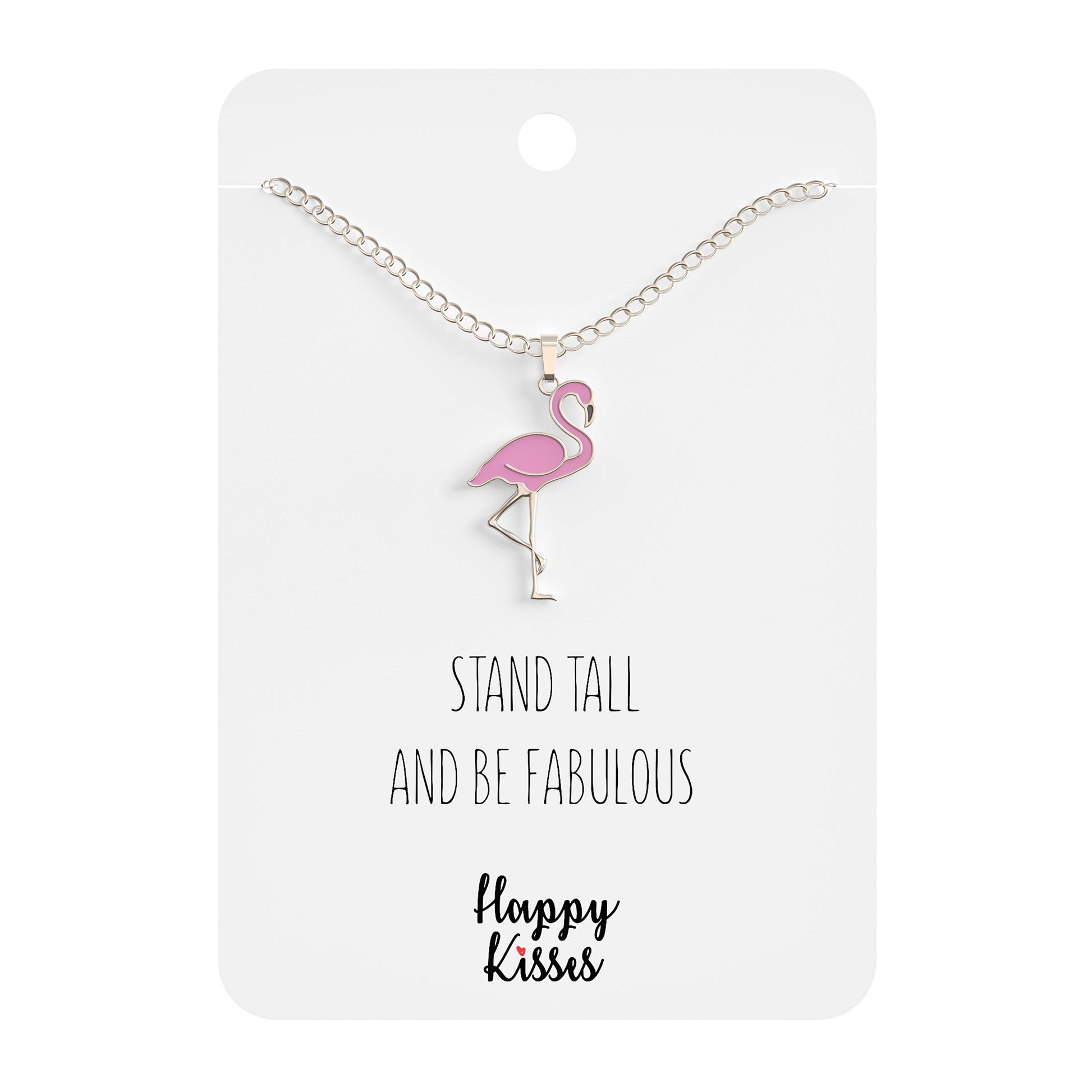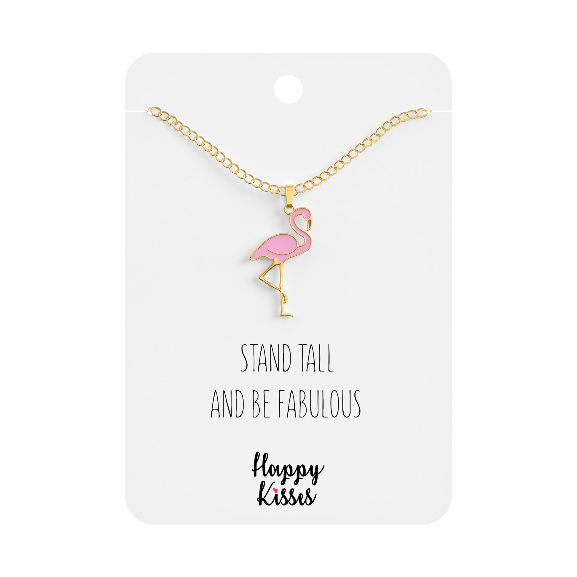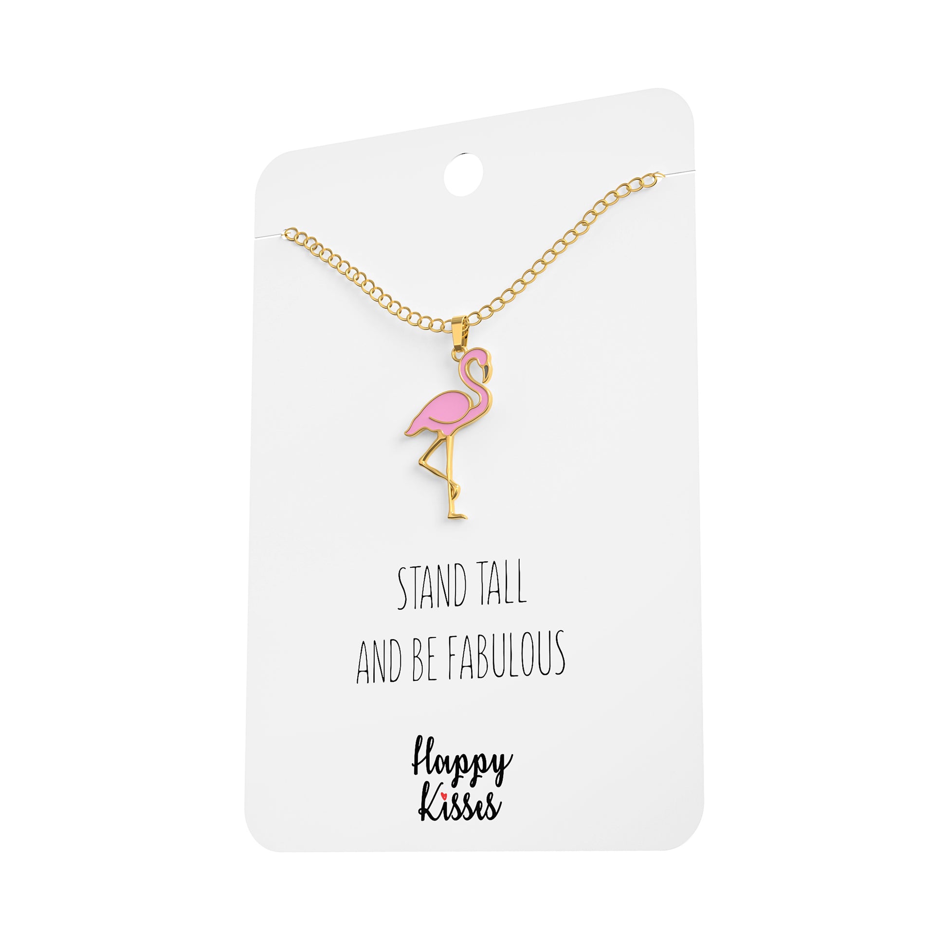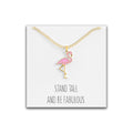 - Beautiful and funny flamingo “Stand Tall and Be Fabulous” necklace plated in 18K gold. Cute pendant with a nice detailed design for your bird enthusiast.
