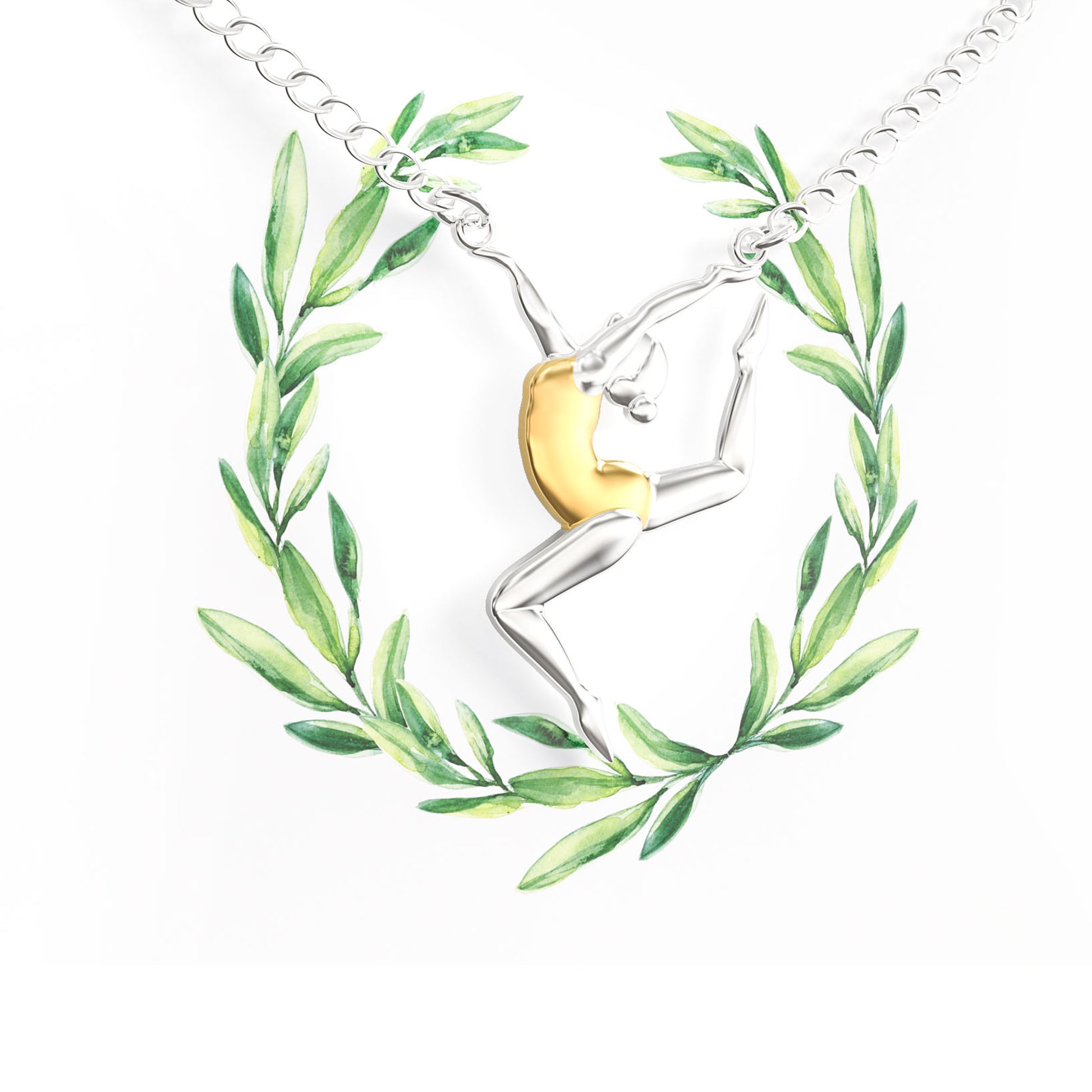 - Super cute women’s adjustable gymnastic player necklace plated in 18K silver and gold. Great original pendant for any woman, girl, teen, or kid who enjoys the sport of gymnastics.