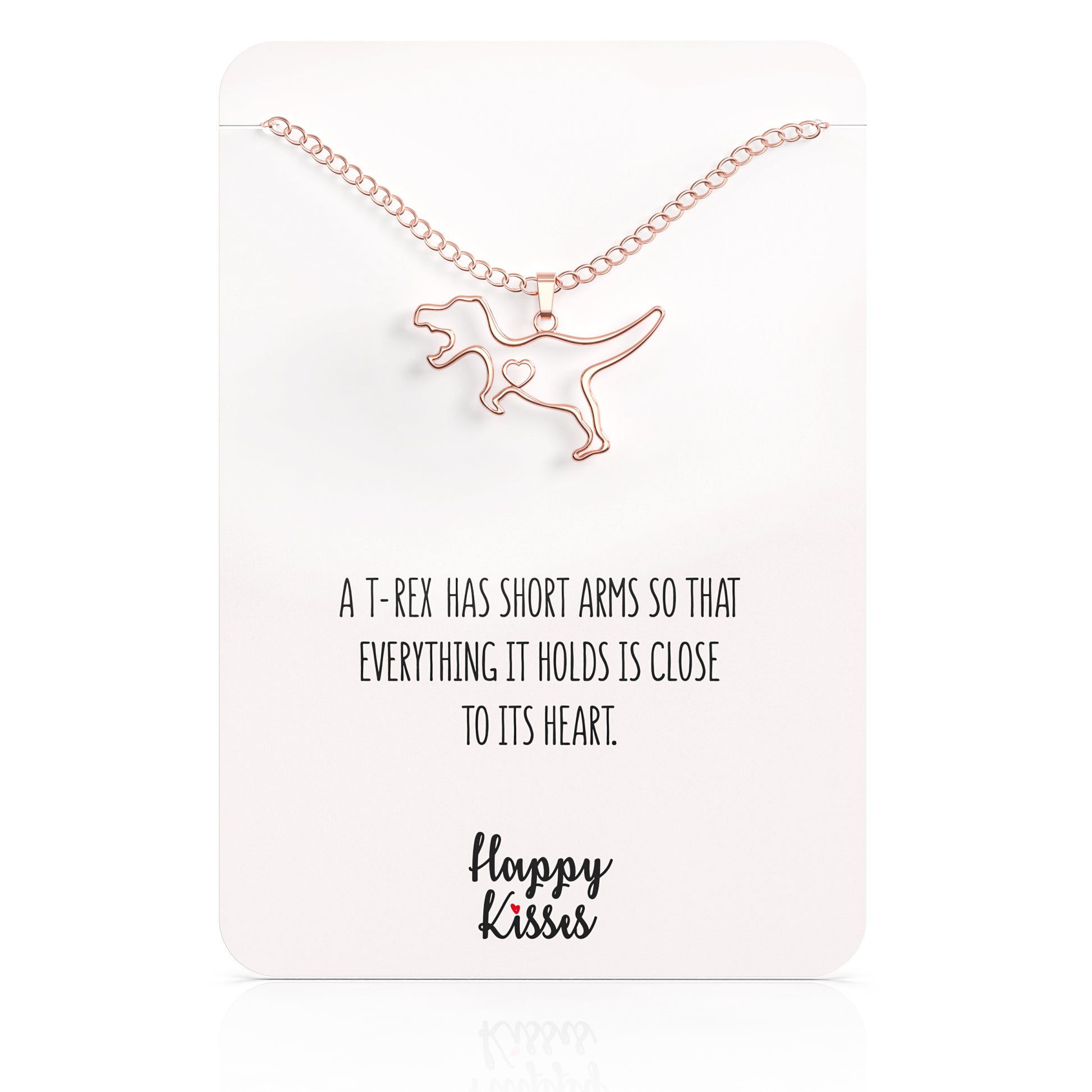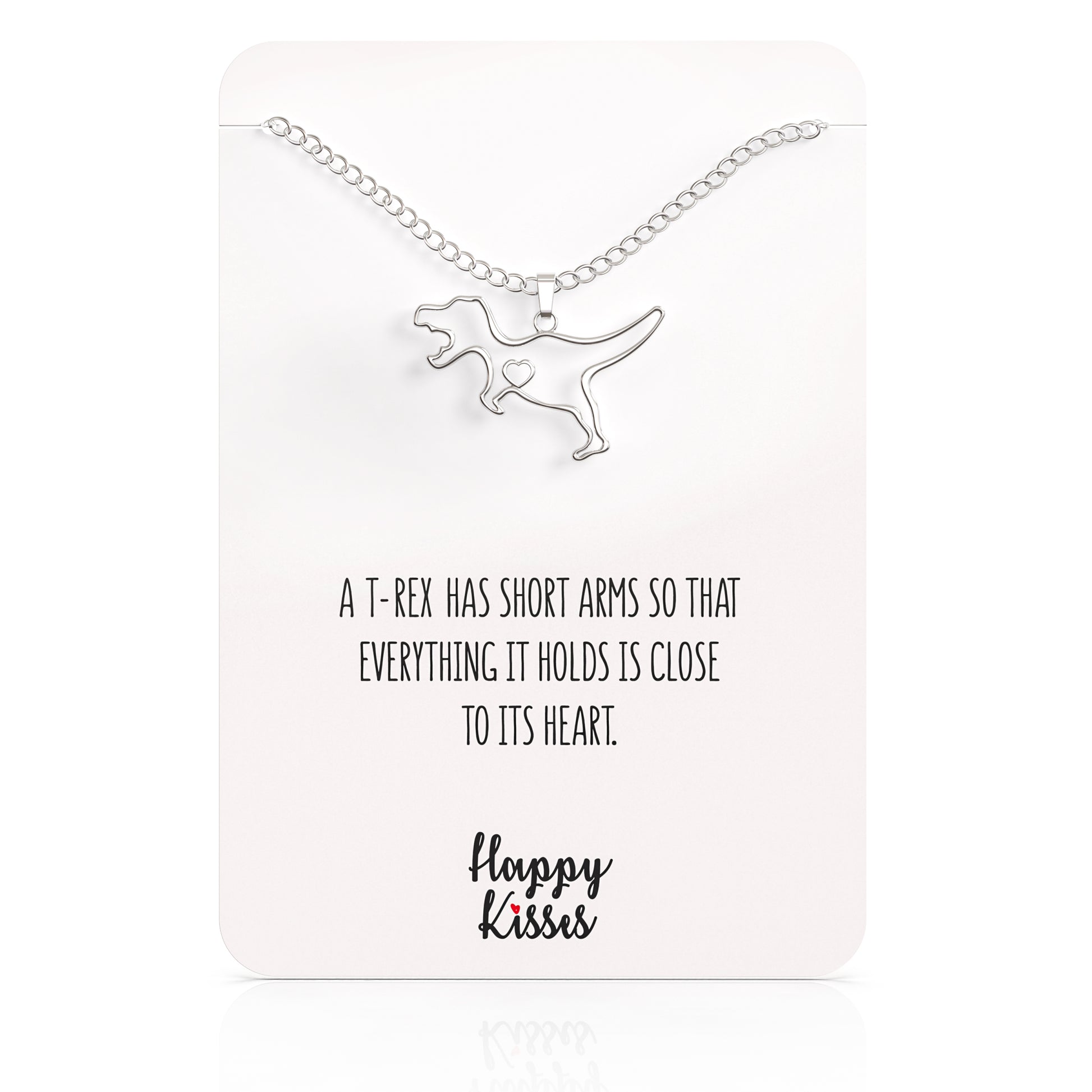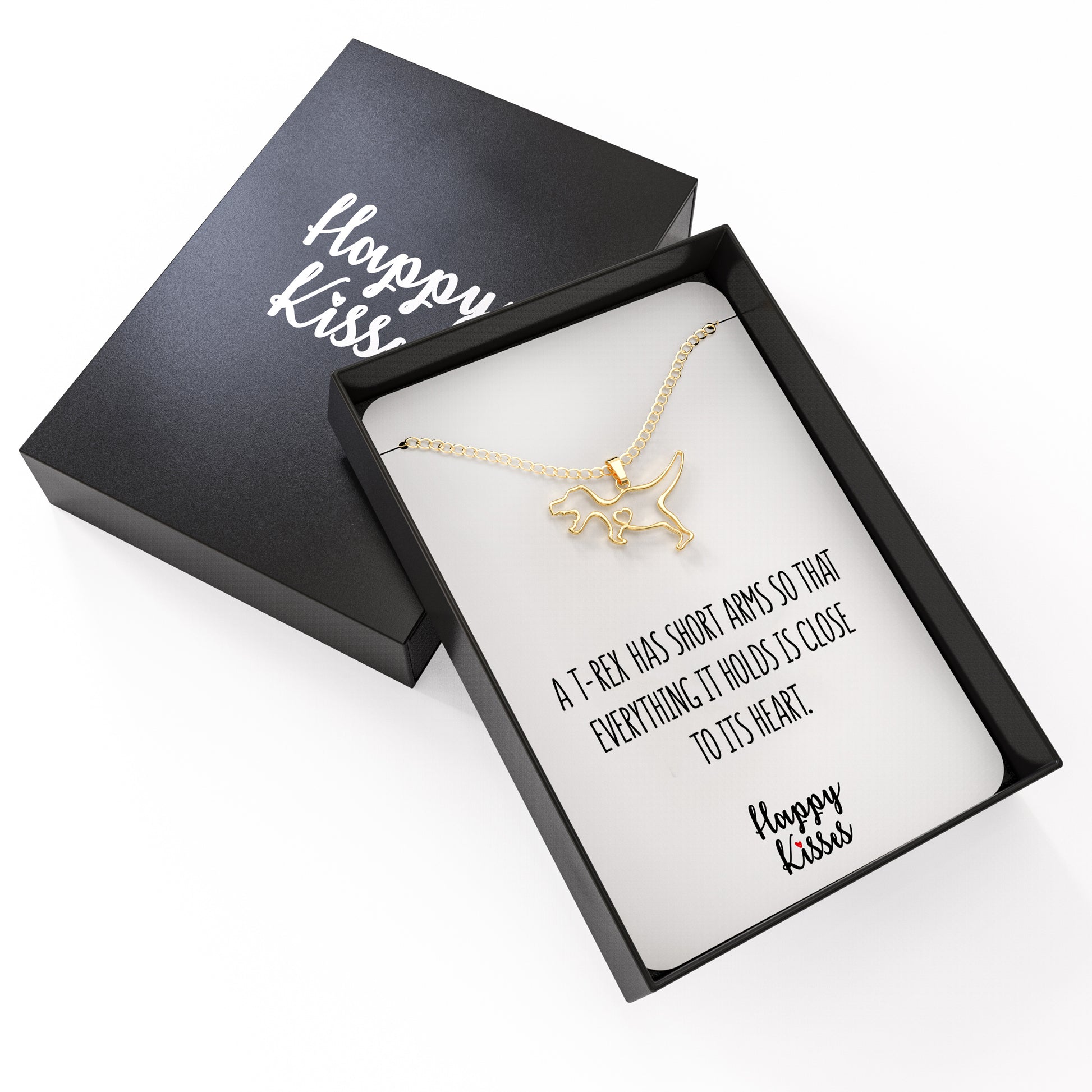 - 💌 Heartfelt Message Card: Packaged with a sturdy message card featuring the sentiment, "A T-Rex Has Short Arms So That Everything It Holds Is Close to Its Heart," this necklace is a touching reminder of its significance in your heart.