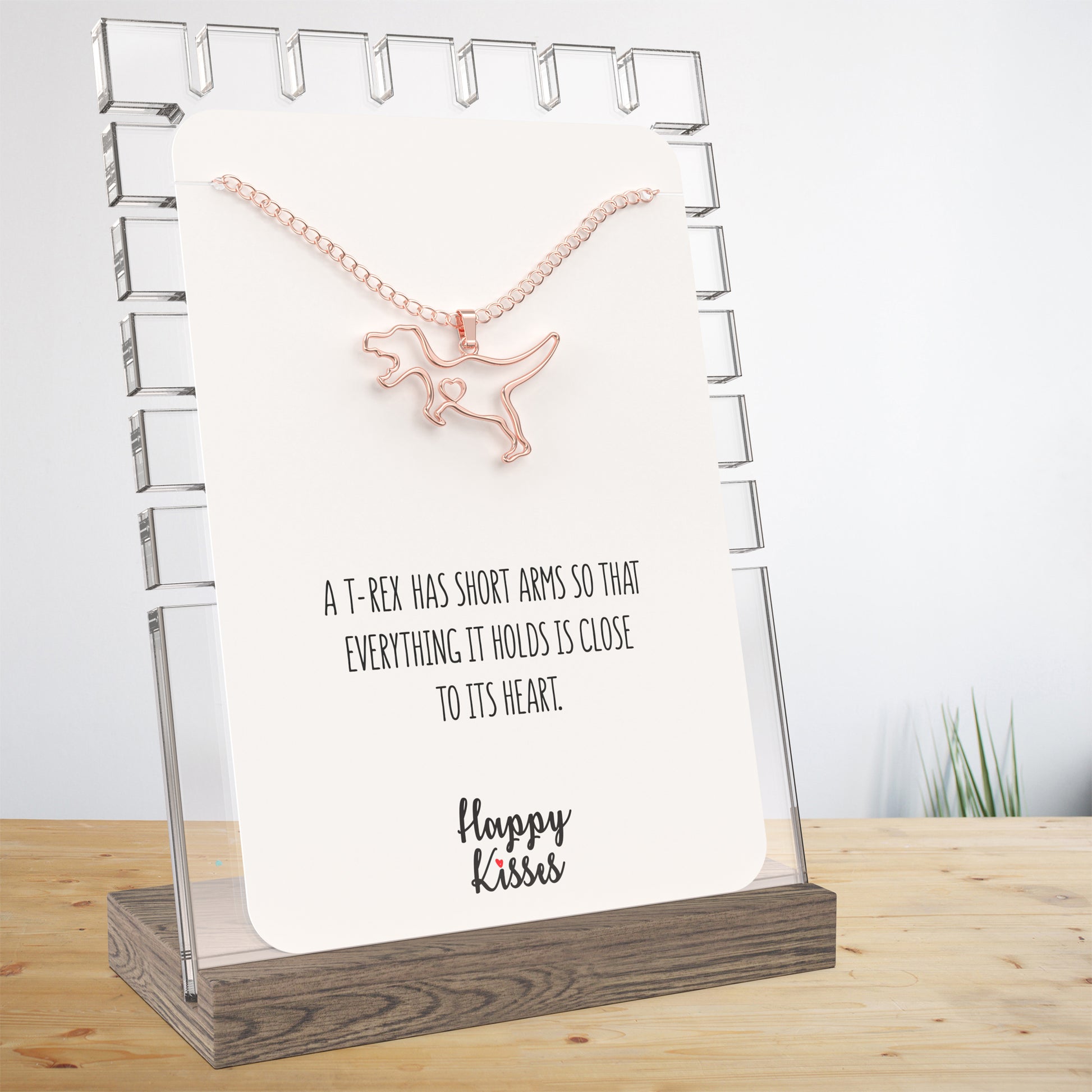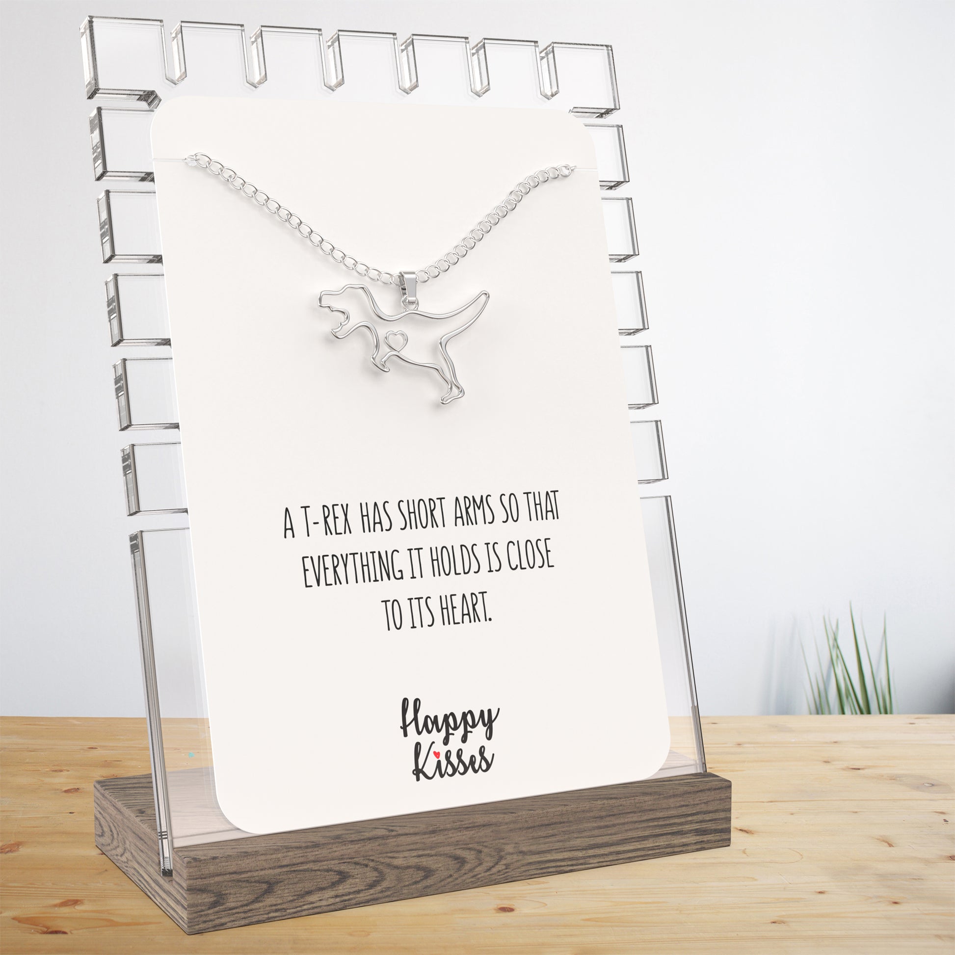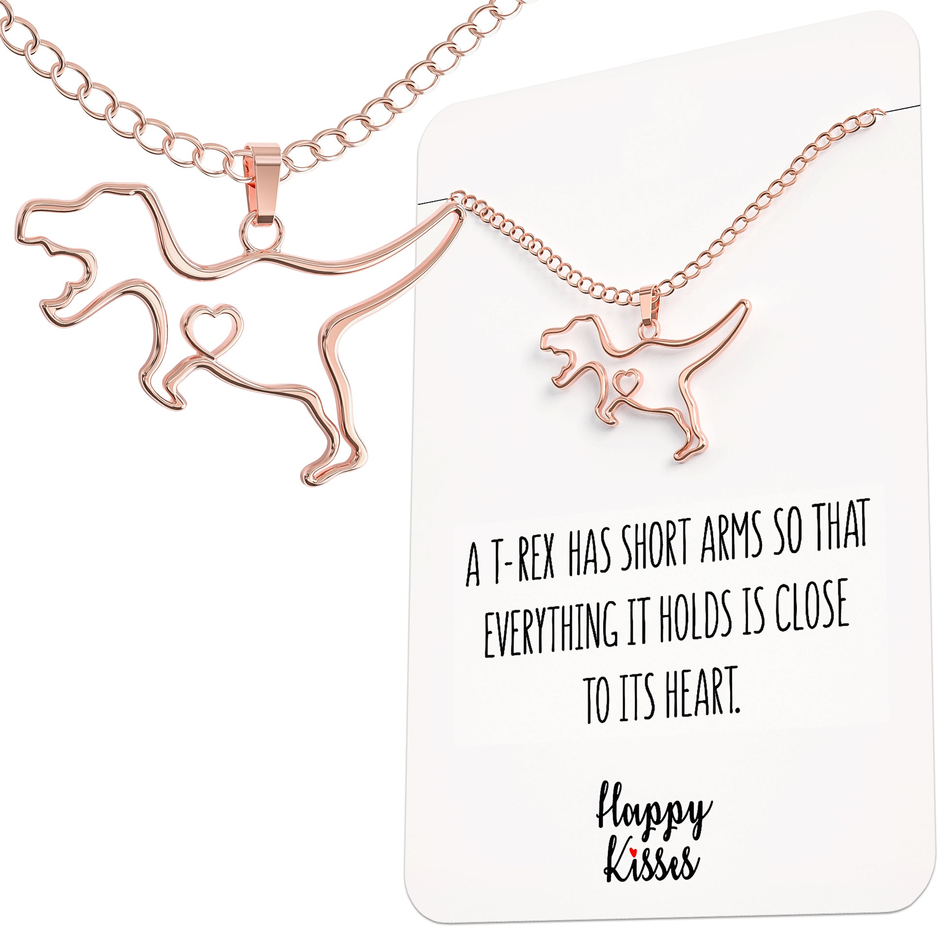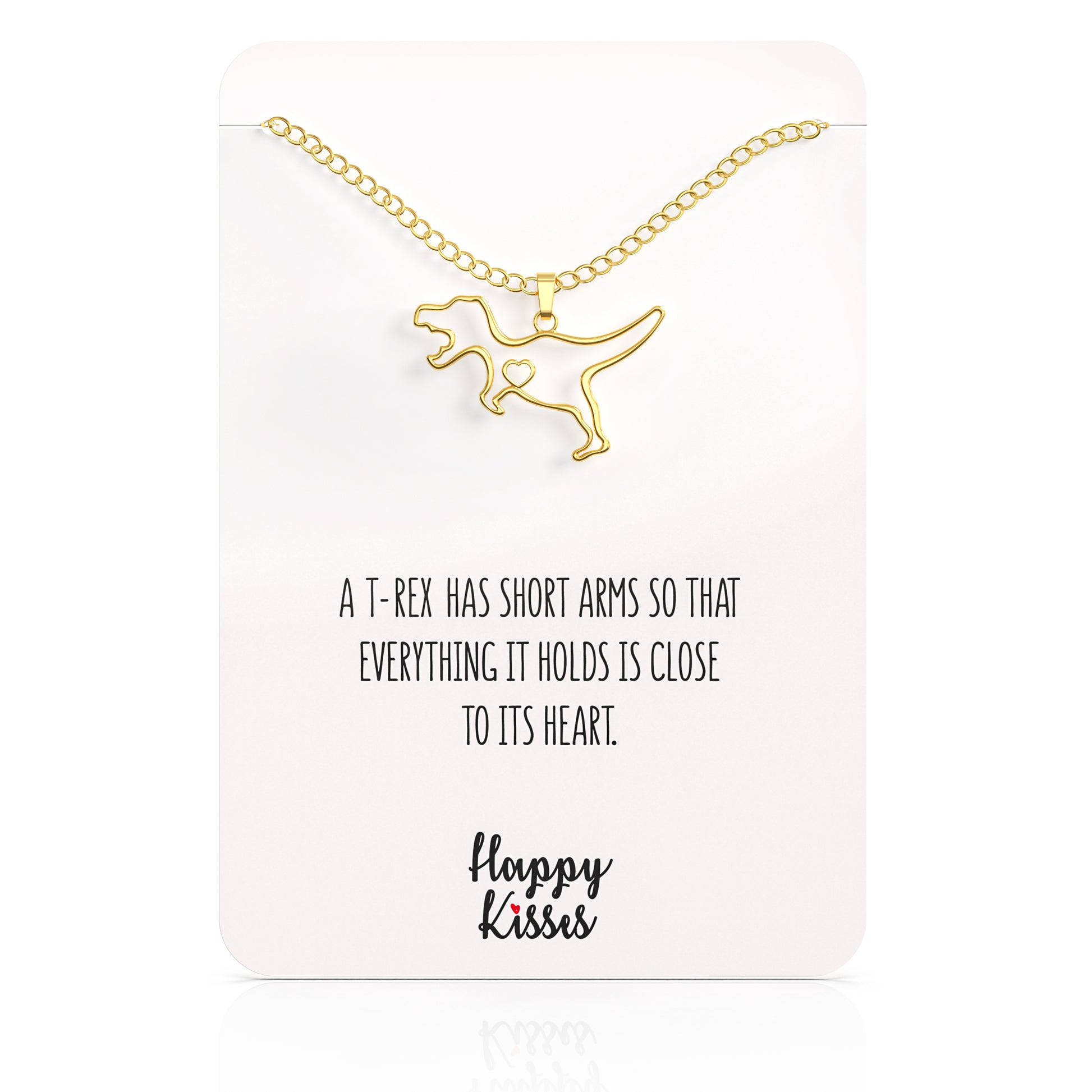 - 💌 Heartfelt Message Card: Packaged with a sturdy message card featuring the sentiment, "A T-Rex Has Short Arms So That Everything It Holds Is Close to Its Heart," this necklace is a touching reminder of its significance in your heart.