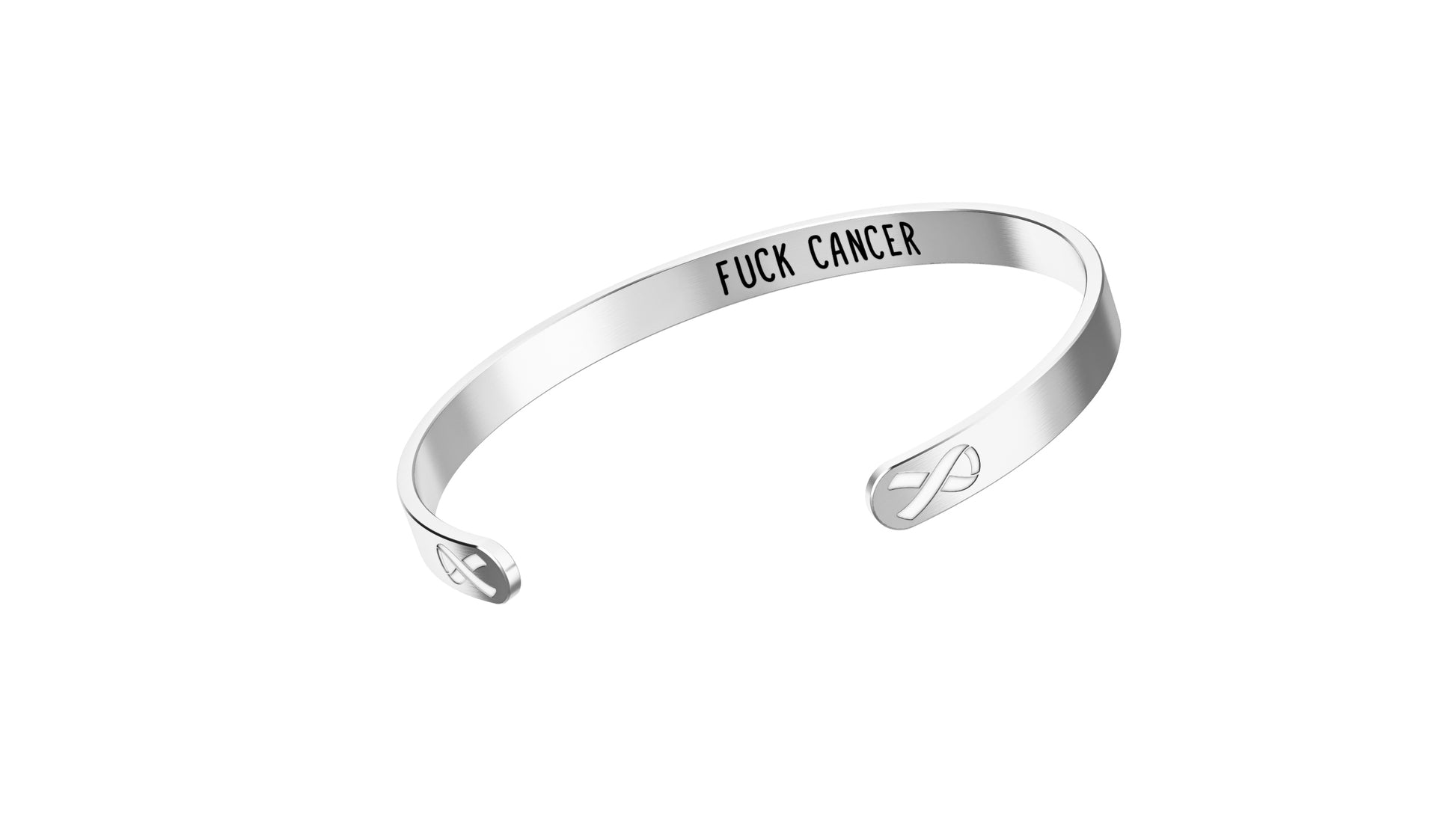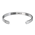 High-quality stainless-steel cuff bracelet designed for the great women who are fighting or have fought against lung cancer and for the friends and family that have stood by their side in the fight. They come in a nice velvet gift bag, has the cancer ribbon on the outside and a hidden message “F@@k Cancer” on the inside. Beautiful classic bracelet that will match any outfit or occasion. Show your appreciation for the strength of people and their family & friends that have fought cancer.