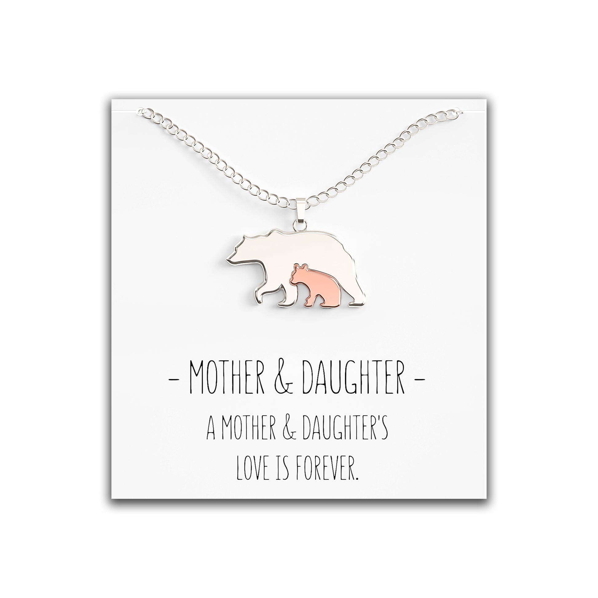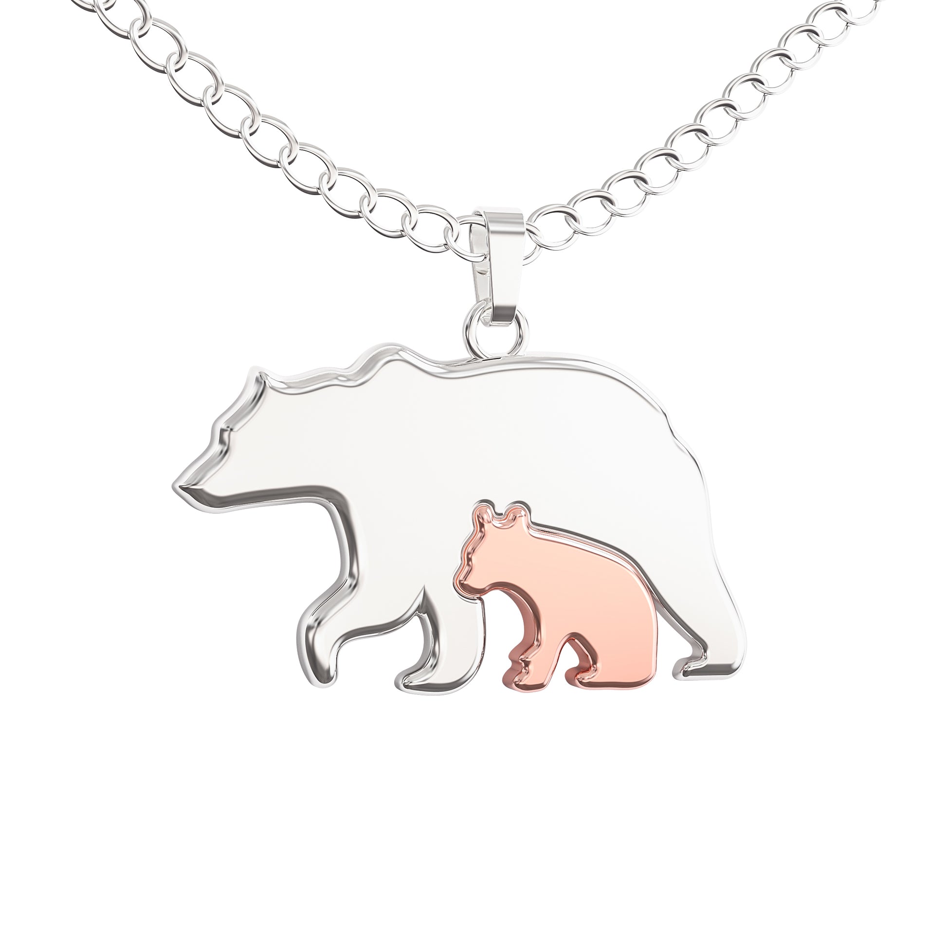 - Super cute mama & baby bear necklace plated in silver & rose gold.