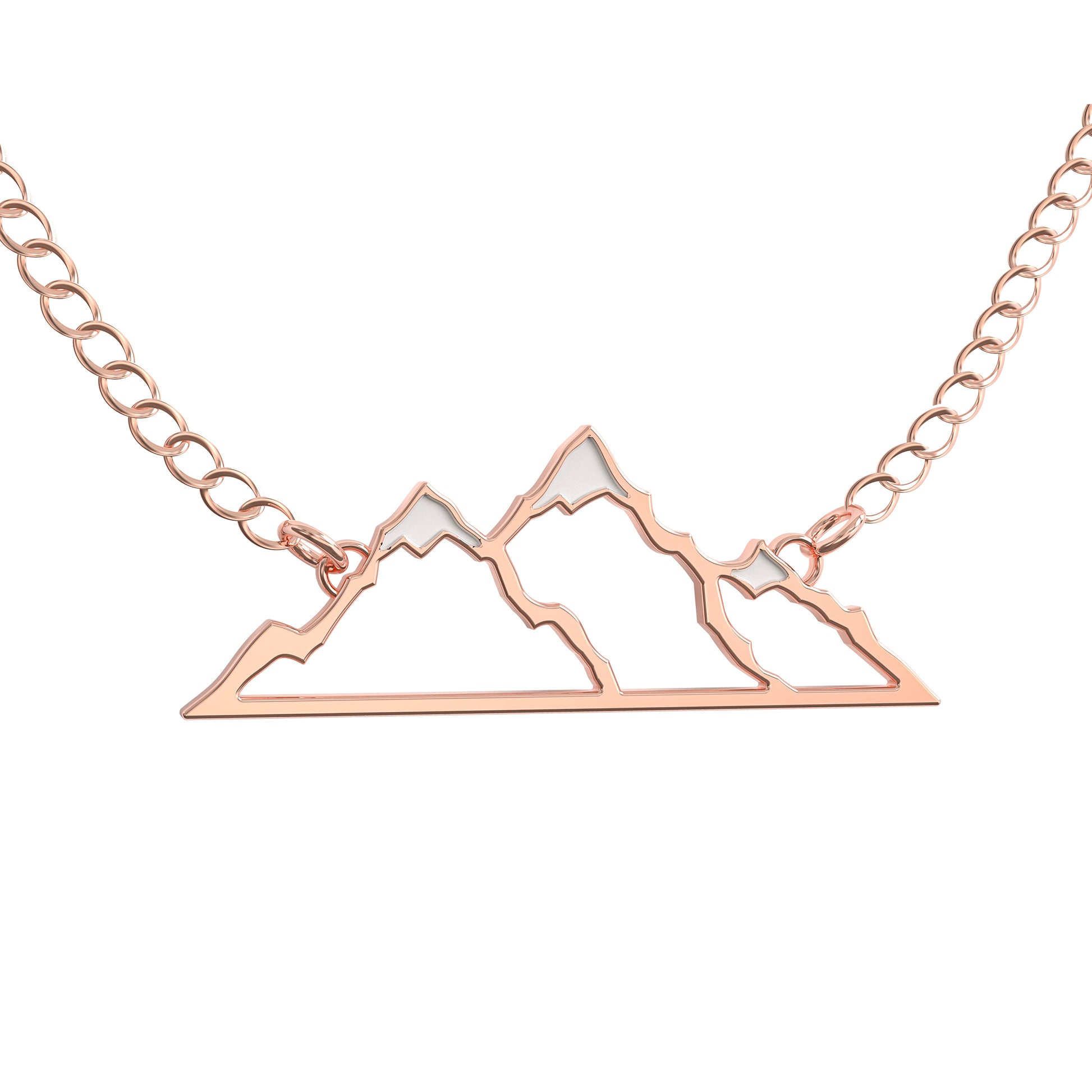 - Beautiful mountain range necklace plated in 18K Rose Gold, Silver or Gold. Cute pendant with a nice detailed design for your outdoor enthusiast.