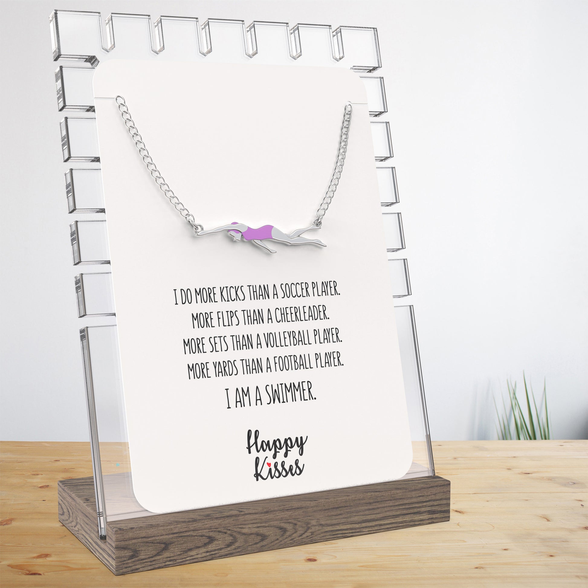 Swim Gift Necklace for Teen Girls – Swimming Necklace with Swimmer Pendant for Swim Team – Inspirational Message Card