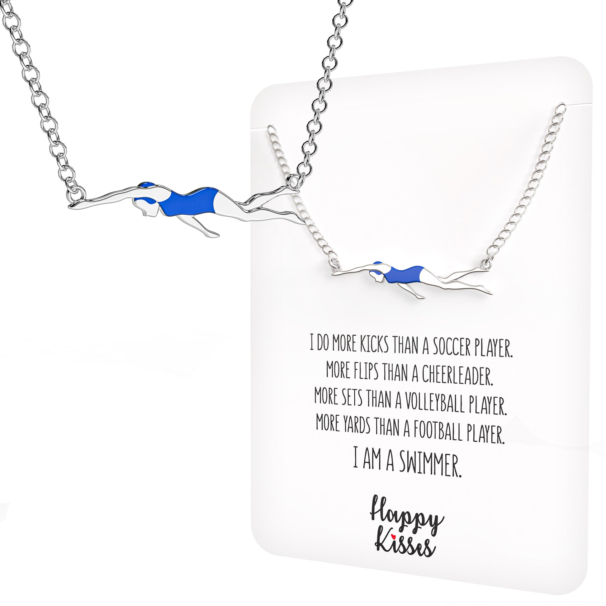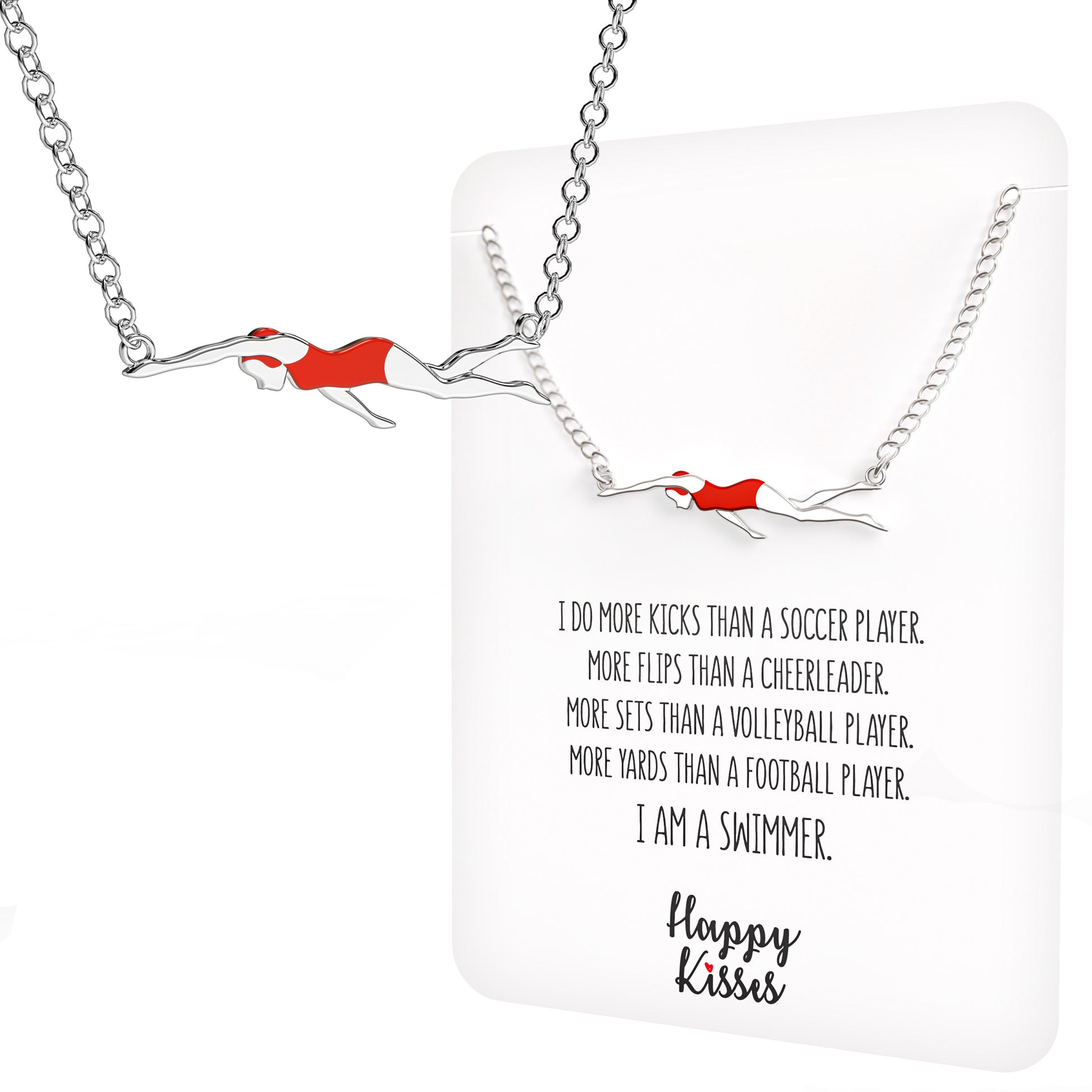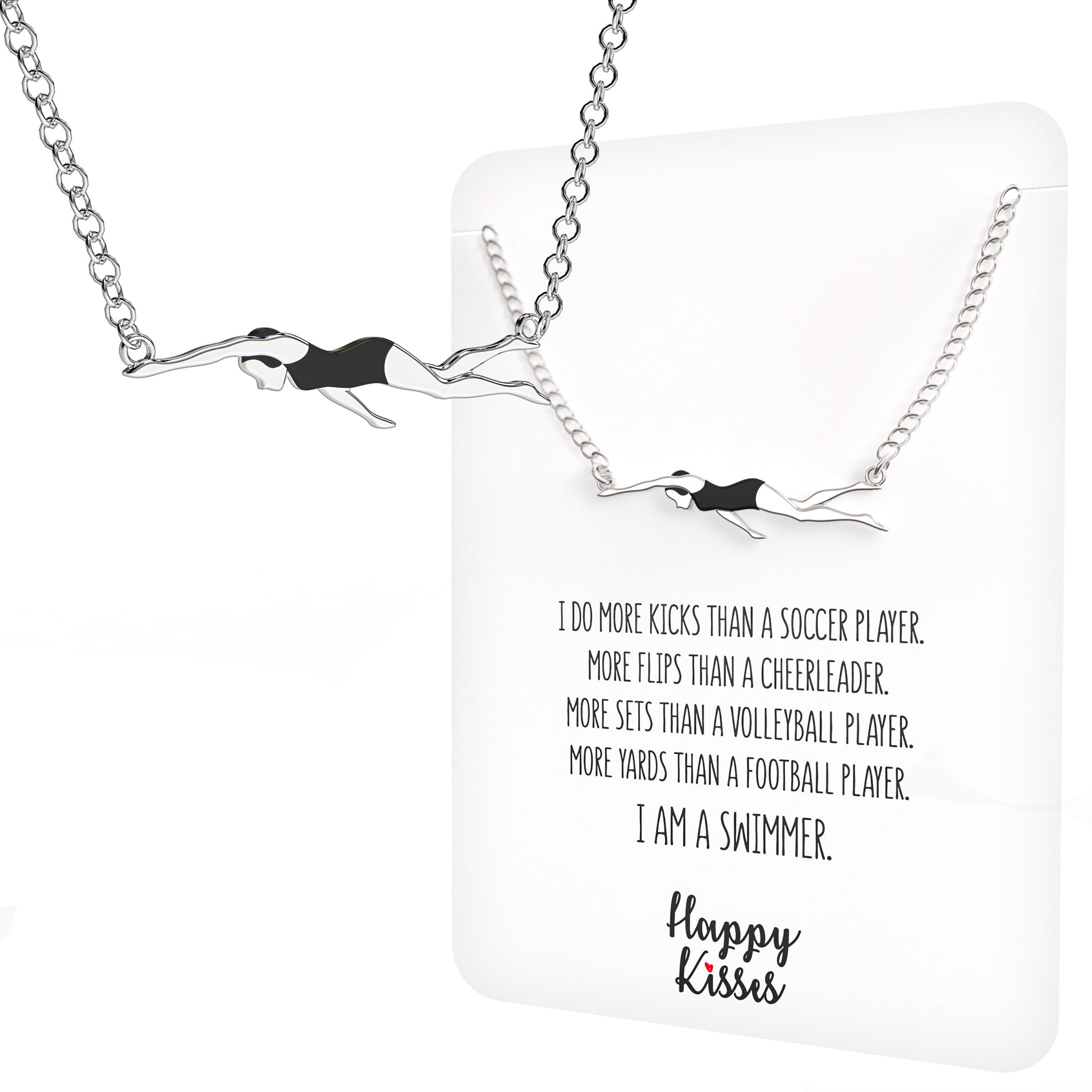 - Super cute women’s adjustable swimmer necklace plated in 18K silver. Great original pendant for any woman, girl, teen, or kid who enjoys to swim.